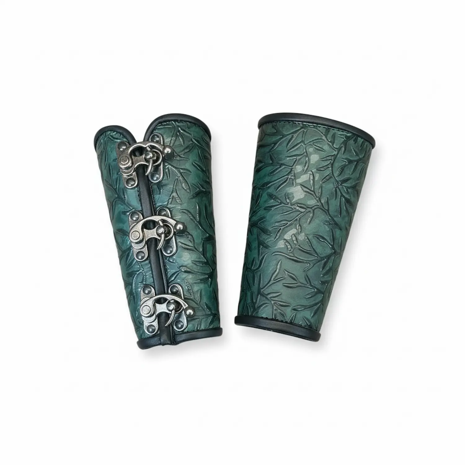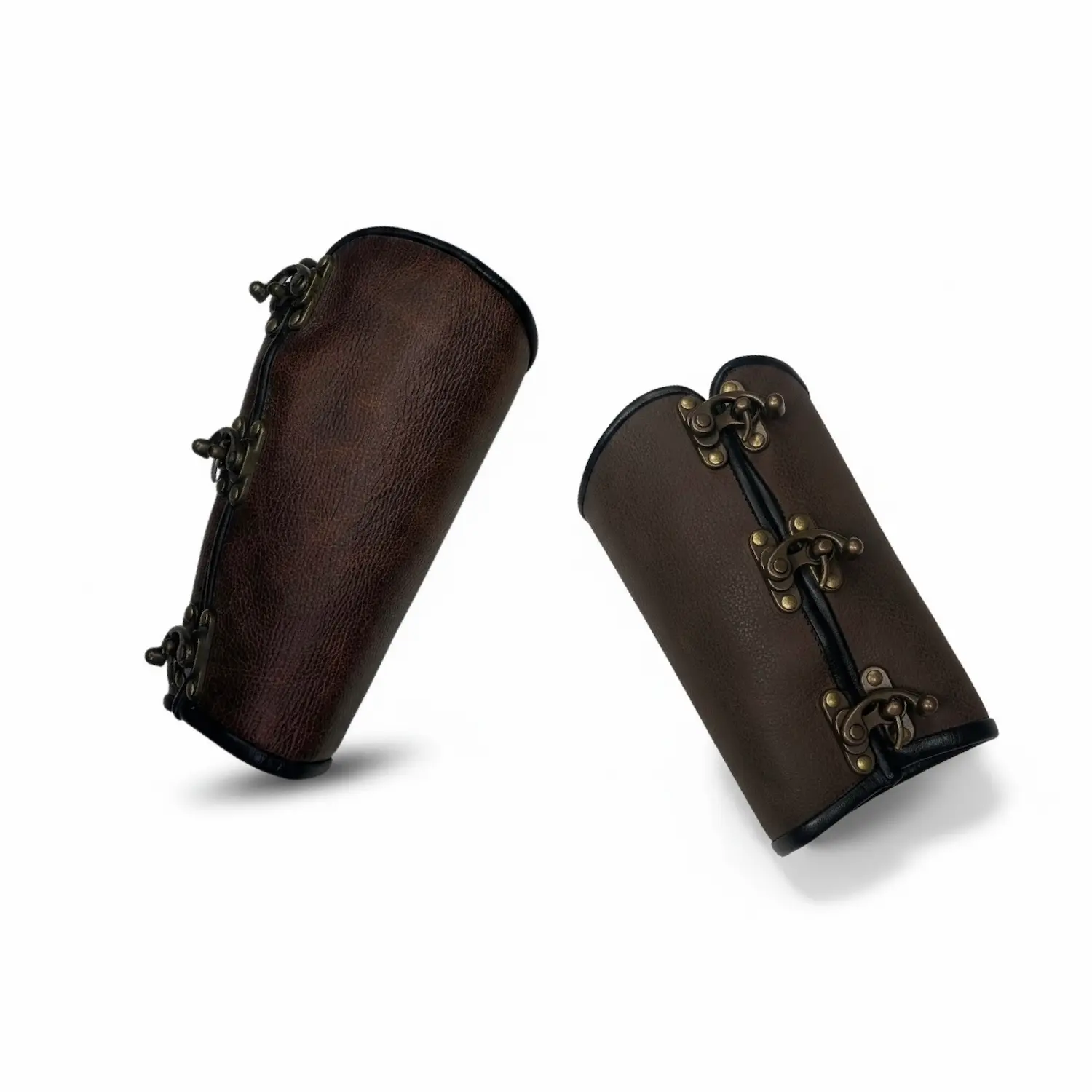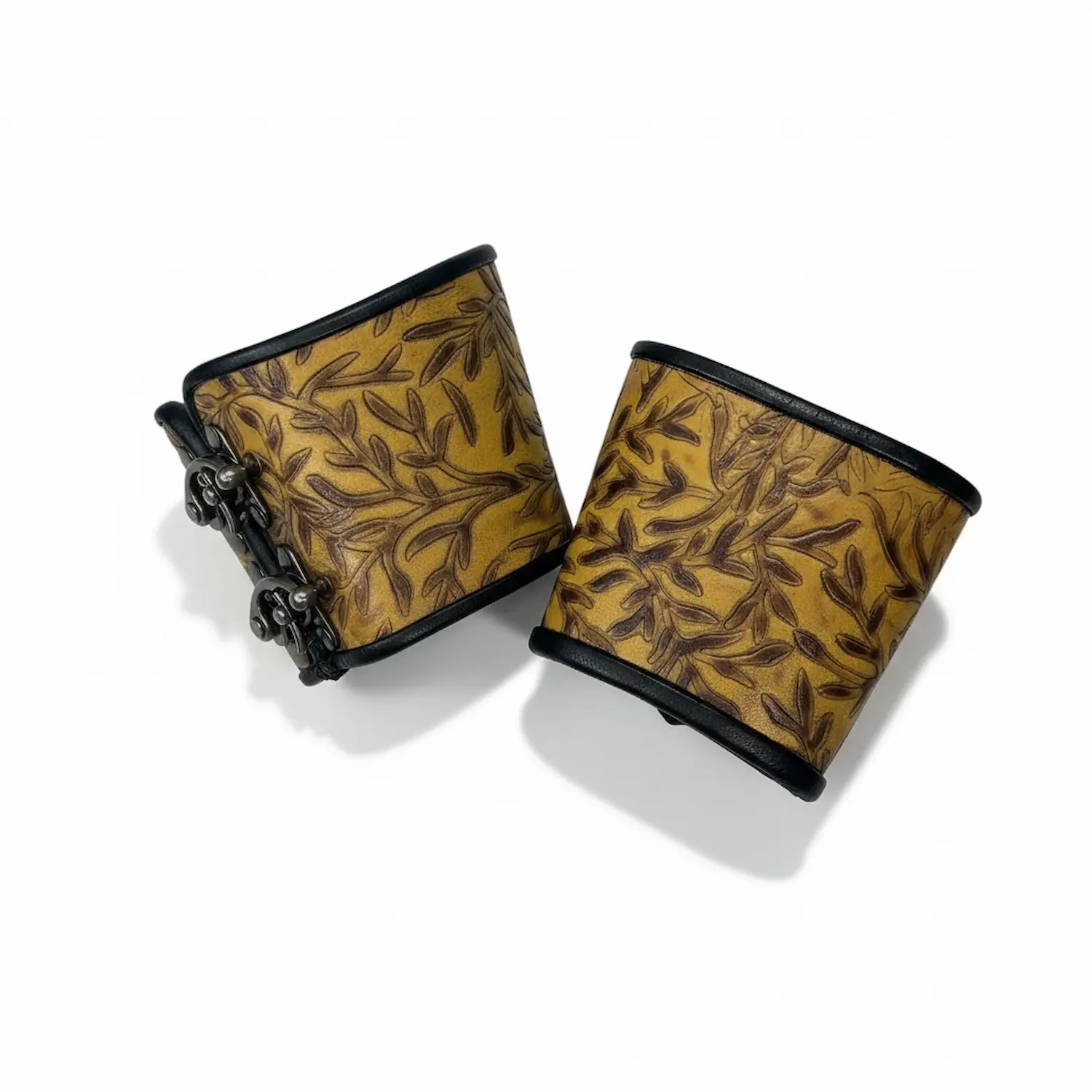 Our 3-clasp bracers feature a bolder silhouette that highlights the character of our specialty hides. A single 3-clasp bracer starts at $45, with additional costs for larger sizes.